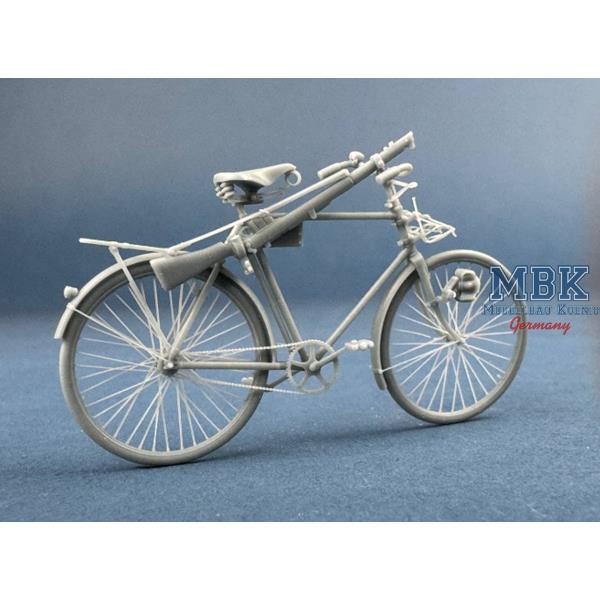 Das britische Mk.IV war ein robustes Militärfahrrad, das in beiden Weltkriegen zum Einsatz kam und für seinen stabilen Rahmen und seine Zuverlässigkeit geschätzt wurde. Es war für die Mobilität in unwegsamem Gelände konzipiert und verfügte über eine robuste Konstruktion, einen Gepäckträger und einen Ein-Gang-Antrieb. Das Mk.IV wurde von Meldefahrern und Infanterie eingesetzt und spielte eine wichtige Rolle in Kommunikation und Transport.