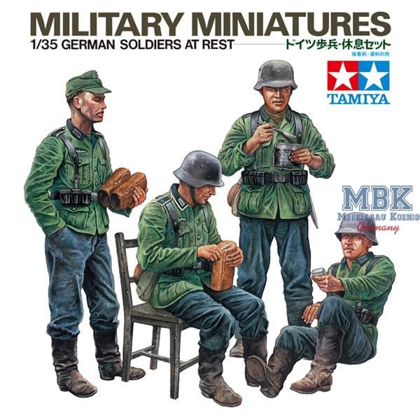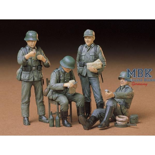 Dieser Figurensatz stellt vier deutsche Soldaten des Zweiten Weltkriegs dar, die sich von den Strapazen des Kampfes erholen. Dank ihrer Detailgenauigkeit und Vielseitigkeit eignen sich diese Ganzkörperfiguren hervorragend für Dioramen und sind eine ideale Ergänzung zu den zahlreichen Tamiya-Modellen deutscher Panzerfahrzeuge aus dem Zweiten Weltkrieg.