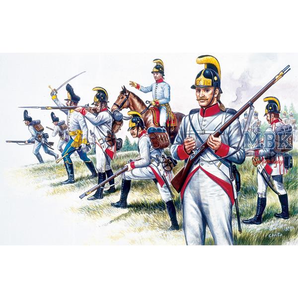 Im Juli 1809 wurden die österreichischen Truppen unter dem direkten Befehl von Erzherzog Karl in der Schlacht bei Wagram von Napoleon besiegt. Die Figuren eignen sich zur Darstellung der Schützenregimenter oder des Grenadierkorps Reverse unter dem Befehl Liechtensteins.
