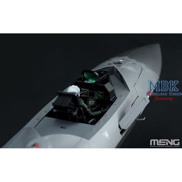 Die Neigungswinkel sind größer als bei der Lockheed Martin F-35, und die rahmenlose Kabinenhaube ähnelt der der F-22.