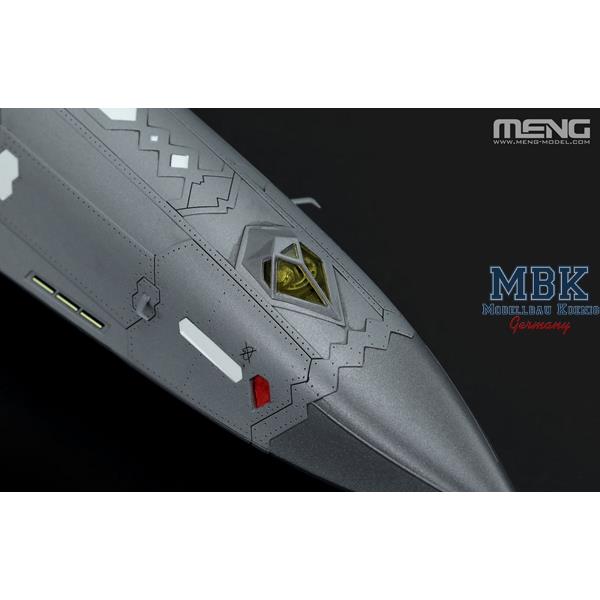 Die Tarnkappenform ähnelt der der F-22. Die flachen Rumpfseiten sind auf die schräggestellten Heckflügel ausgerichtet, der Übergang zwischen Flügel und Rumpf ist sauber, und der vordere Rumpf ist von einer scharfen Kimmlinie umschlossen.