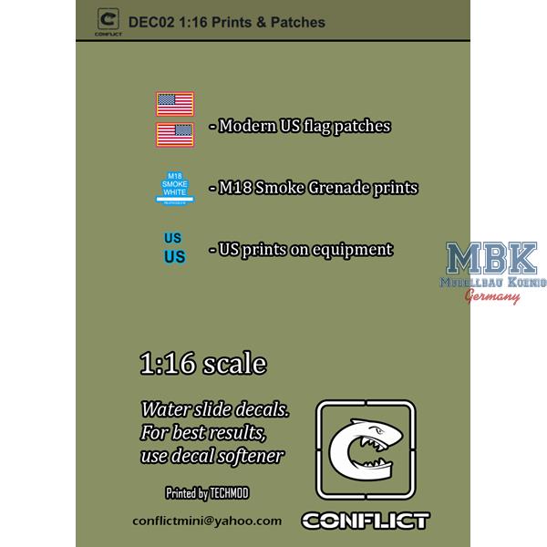 Hochdetailliert gedruckter Decalbogen (90 x 65mm) mit verschiedenen Abzeichen für die Uniform und Ausrüstung