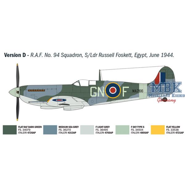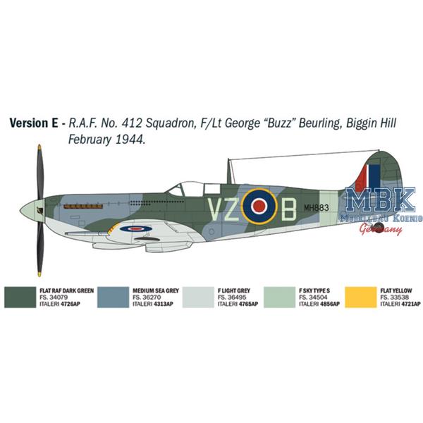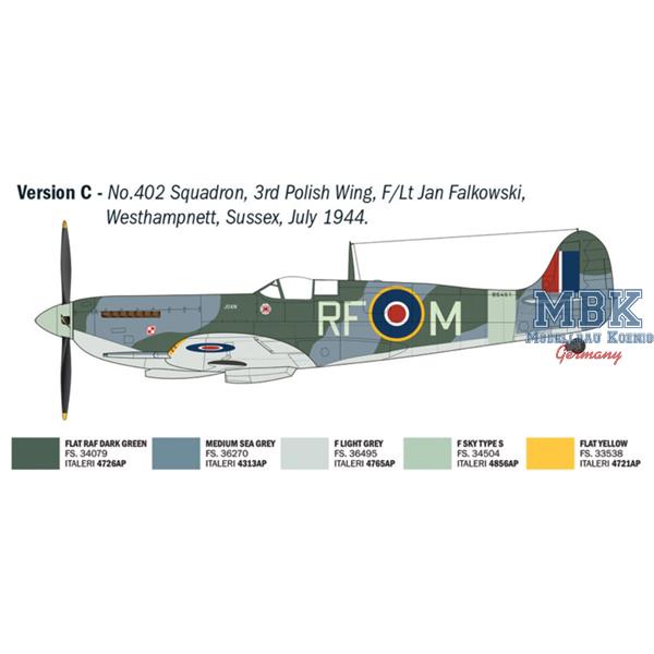 The Supermarine Spitfire fighter can undoubtedly be considered one of the most famous aircraft in the history of aviation and an icon of British aeronautical production. A single-engine, low-wing aircraft equipped with effective offensive armament, it formed, in its early versions, together with the Hawker Hurricane, the backbone of the Royal Air Force fighter units during the Battle of Britain against the German Luftwaffe. Victory in the Battle of Britain helped to secure great prestige for the Spitfire. It was characterized by its harmonious design, elliptical wing, and powerful Rolls-Royce Merlin engine. During the war, in order to respond to the technological innovations of its adversaries that led to the development of the formidable Focke-Wulf Fw 190, the Spitfire was continuously evolved in its aerodynamic configuration and engines. The Spitfire Mk IX then entered production and, thanks to its performance, was able to compete on equal terms with the most modern German fighters. Piloted by the most famous aces of the Royal Air Force, it achieved a significant number of aerial victories.