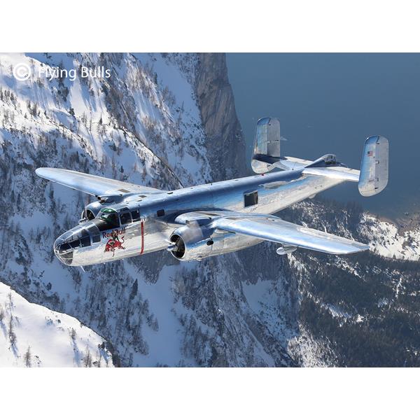 The B-25J, T-28B, Corsair, and Cobra are part of the "Flying Bulls" fleet, currently based at Salzburg Airport in Austria.
