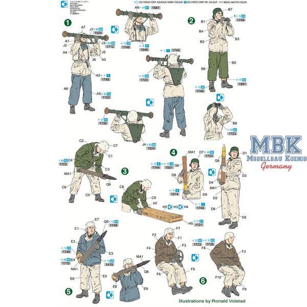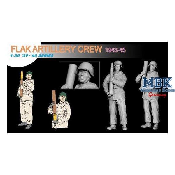 This set contains 6 figures, primarily suitable for the 8.8cm FlaK, but also for larger calibers, or, if you disregard the ammunition-carrying figures, for smaller calibers as well.