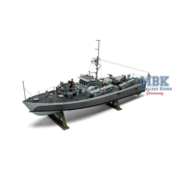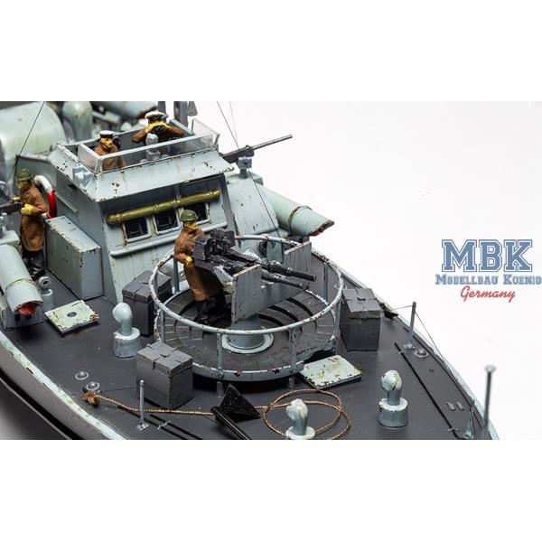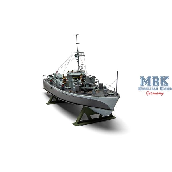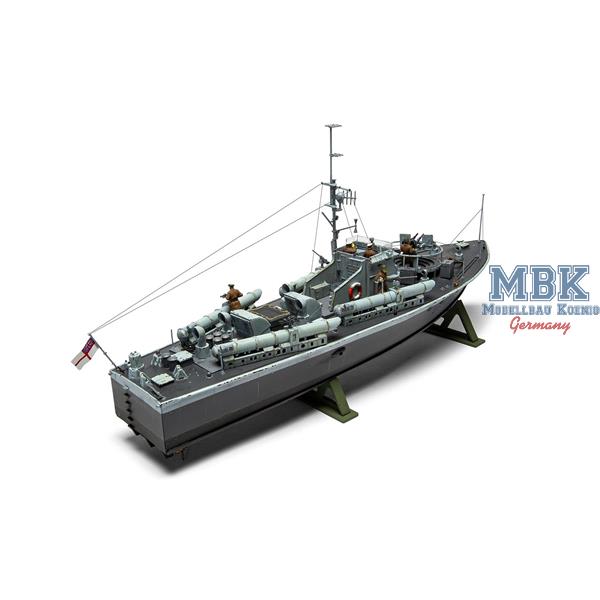 Powered by three Packard engines, the Vosper reached speeds of over 40 knots and in this variant was equipped with four 45.7 cm torpedo tubes on the deck, a 20 mm Oerlikon gun and up to four Vickers machine guns.