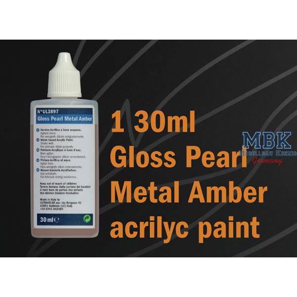 - 1 x 30 ml gloss pearl metal amber acrylic paint