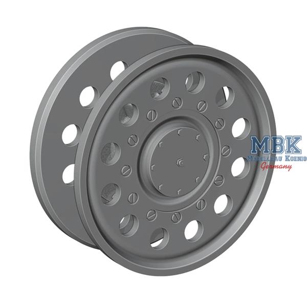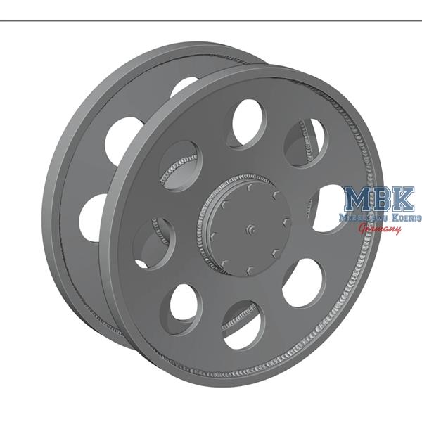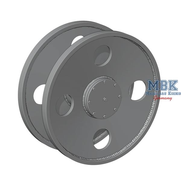 A set of 4 types of the most common, highly detailed replacement Hetzer idlers. Suitable for Takom and Tamiya kits, special adapter for the Academy kit included. 8 wheels in total in the set.